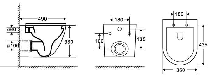 מאפיינים: מנגנון שטיפה רימלס – Rimless ללא תעלה.