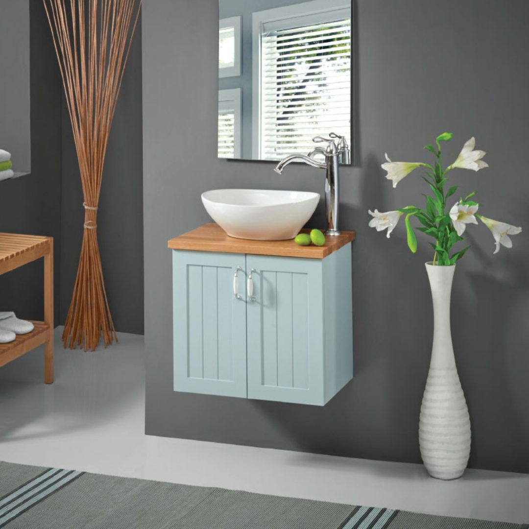 החומר: ארון צבוע אפוקסי, משטח בוצ'ר 26מ"מ, גוף סנדוויץ', חזית MDF ירוק לחדרים רטובים.