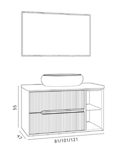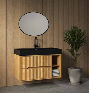 ארון דבלין תלוי , גוף הארון עץ סנדוויץ איכותי בגימור עץ מלא. משטח בוצ’ר עץ אלון + כיור חרס מונח/כיור חרס אינטגרלי סקיני לבן/ כיור חרס אינטגרלי לואי לבן. עם משטח בוצ’ר ניתן לבחור כיור חרס מונח לבן מבריק מכל מבחר הכיורים המונחים של סיוון אופיר או כיור חרס מונח בכל צבע אחר בתוספת מחיר. מגירות עם טריקה שקטה – SOFT CLOSING. מראה: קריסטל מלבנית/עגולה מרחפת. ניתן לשדרג מראה בתוספת תשלום. לא כולל ברז