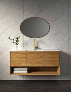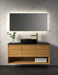 ארון ניו אורלינס תלוי במידה 120/47 ס"מ, גוף הארון עץ סנדוויץ איכותי בגימור עץ מלא. משטח בוצ’ר עץ אלון + כיור חרס מונח/כיור חרס אינטגרלי סקיני לבן/ כיור חרס אינטגרלי לואי לבן. עם משטח בוצ’ר ניתן לבחור כיור חרס מונח לבן מבריק מכל מבחר הכיורים המונחים של סיוון אופיר או כיור חרס מונח בכל צבע אחר בתוספת מחיר. מגירות עם טריקה שקטה – SOFT CLOSING. מראה: קריסטל מלבנית/עגולה מרחפת. ניתן לשדרג מראה בתוספת תשלום. לא כולל ברז