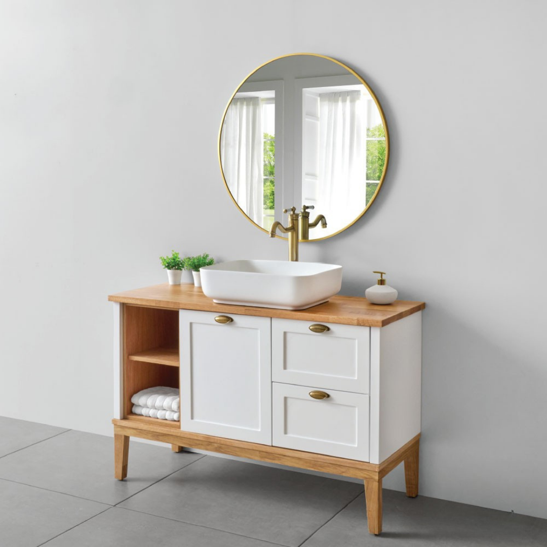 ארון עומד עם 2 מגירות, דלת אחת ותאים פתוחים בסגנון כפרי קלאסי עם מסגרת