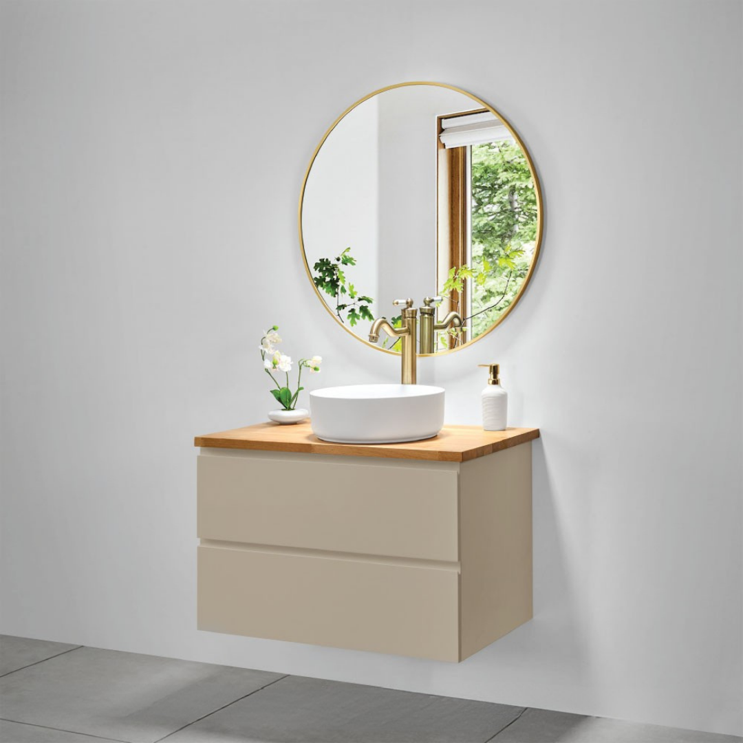 ארון תלוי בעיצוב מודרני עם שתי מגירות חלקות ופתיחה אינטגרלית שילוב הרמוני, מינימליסטי ונקי שמשתלב בקלות בכל סגנון עיצוב מגיע עם כיור מונח על משטח אינטגרלי, כולל אפשרות שדרוג כיור/משטח, בחירת גוון ארון