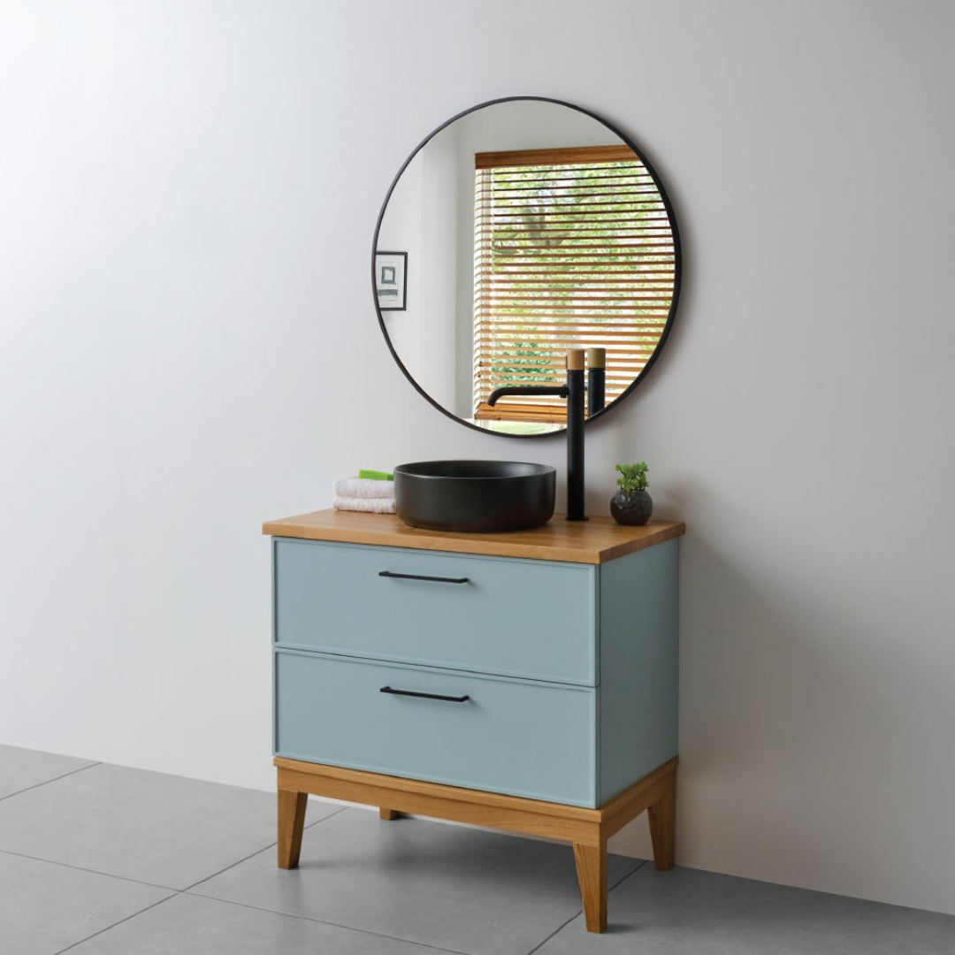 מגיע עם משטח בוצ׳ר ואפשרות לשדרוג, בחירת גוון ובסיס הרגליים. החומר : ארון צבוע אפוקסי. בסיס רגלי מעץ, גוף סנדוויץ', חזית MDF ירוק לחדרים רטובים. פרזול : מסילות SOFT CLOSING וידיות מעוצבות