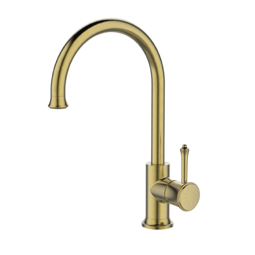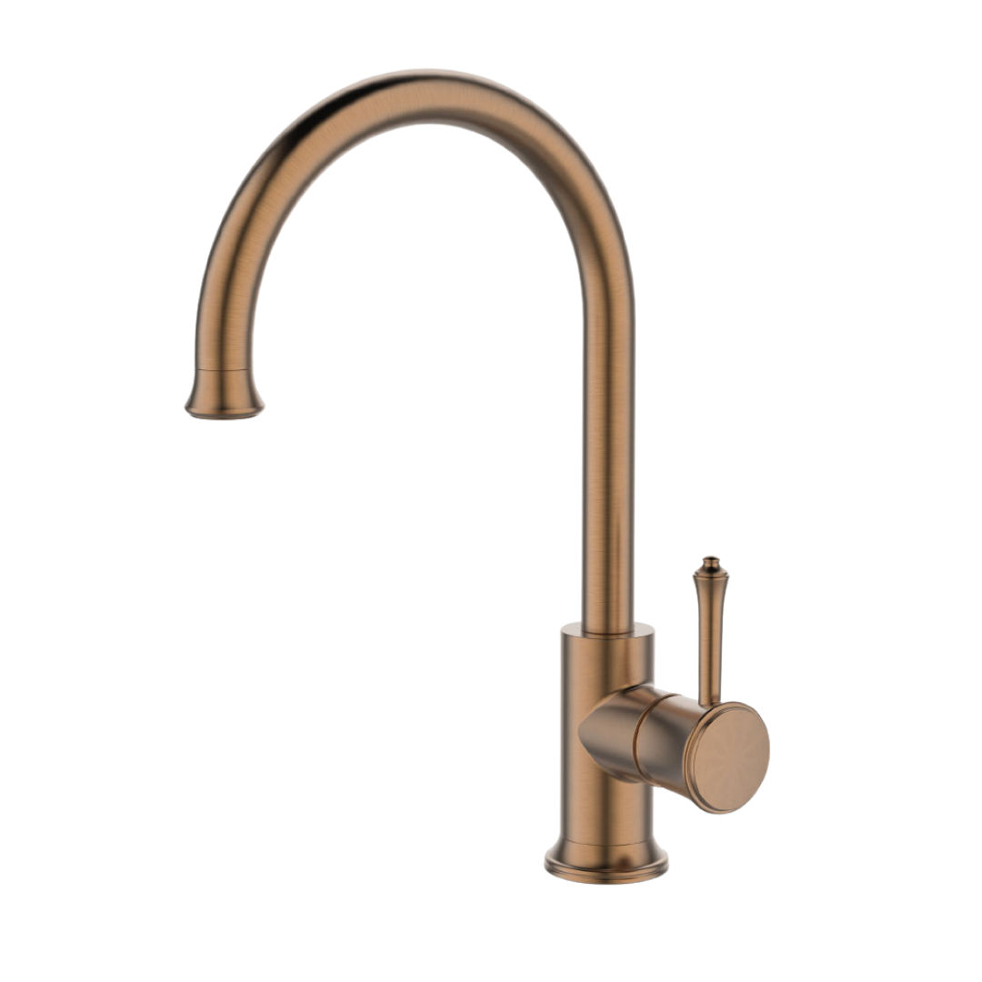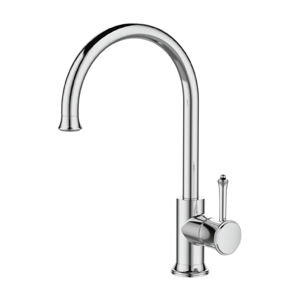 ברז מטבח בעיצוב קלאסי עם קשת גבוהה וידית עגולה זקופה