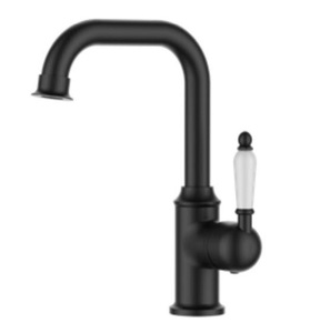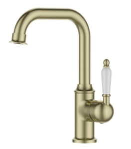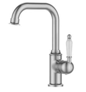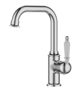 ברז פרח נמוך בעל פיה מסתובבת וידית חרס לבנה 3681 לכיור אינטגרלי