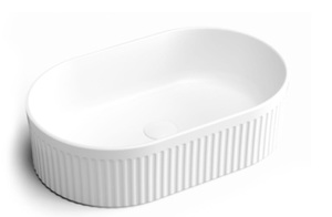 כיור חרס מונח מעוגל 49X31X13 ס"מ עם פסים לבן מבריק 9749MW סיוון אופיר